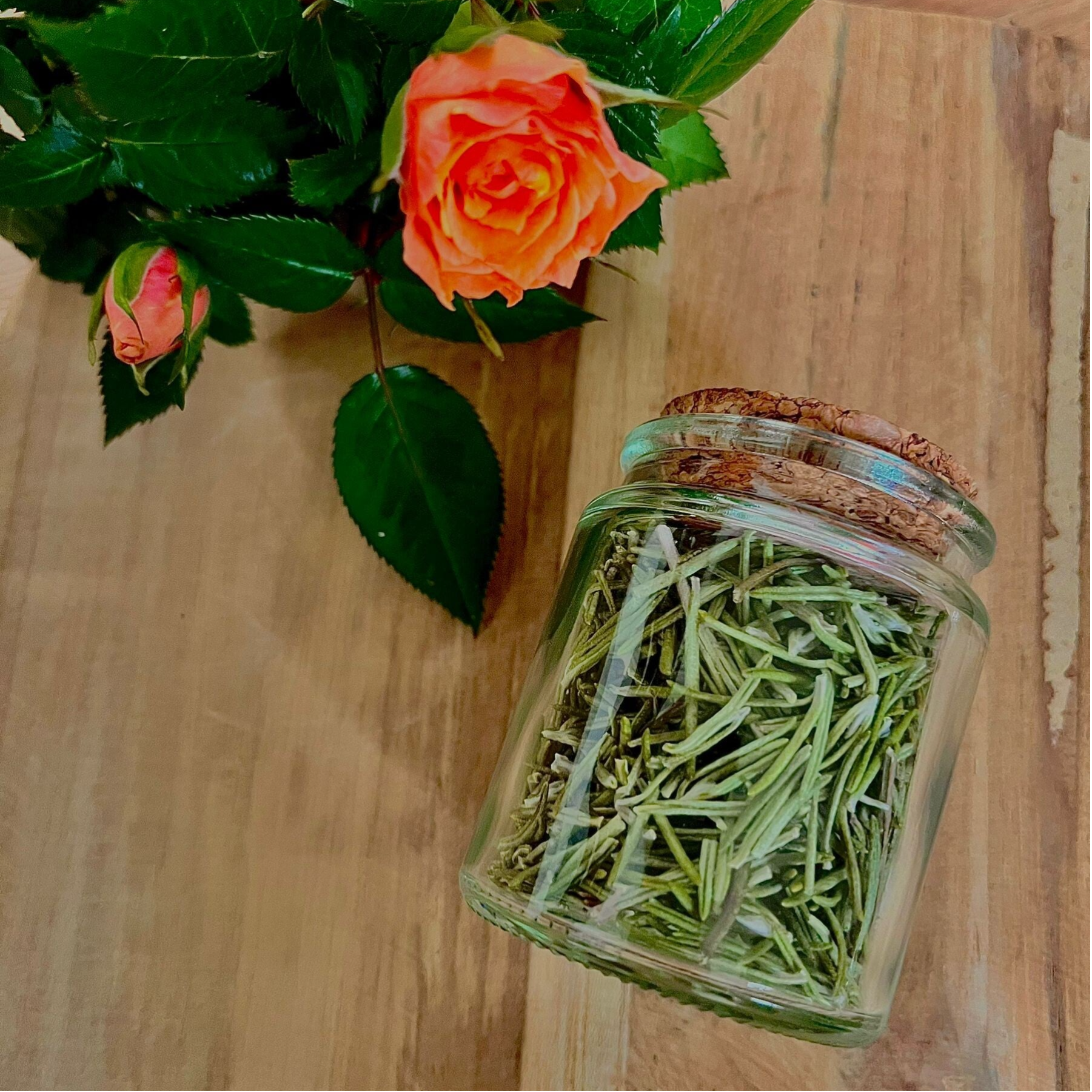 Der Rosmarin stammt aus unserem eigenen Garten und wurde in Liebe und tiefer Dankbarkeit für die nährende Kraft unserer Natur von Hand geerntet und getrocknet.